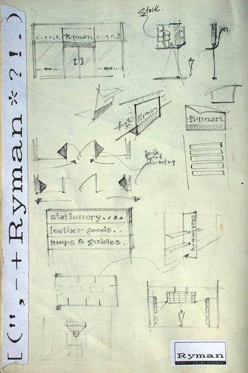 Here’s the original design sketch done, way back in 1991/92, when I was head of graphic design at Isherwood & Company, a retail design agency based in Putney, London. The sketch is starting to yellow and it’s a bit dog eared now, but the basic idea has stood the test of time.