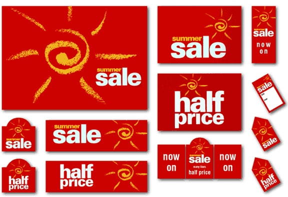 Over the years at Right Angle, we’ve designed and artworked lots of sale promotions for various retailers (guilty as charged for our sins!), here are a few examples: