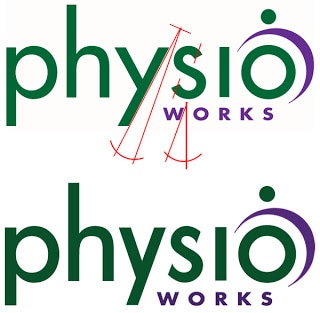 ‘Works’, slotted effortlessly into the space created by the descender of the ‘y’, we made the ‘s’, centre below the ‘o’ of ‘physio’, and with the head of the figure, while the ‘r’, centred directly below the ‘i’, of physio. In the final version, we adjusted the angle of the ‘y’ and ends of the ‘s’ to match the angle of the ‘w’, thus making the new logo more unique & distinctive.